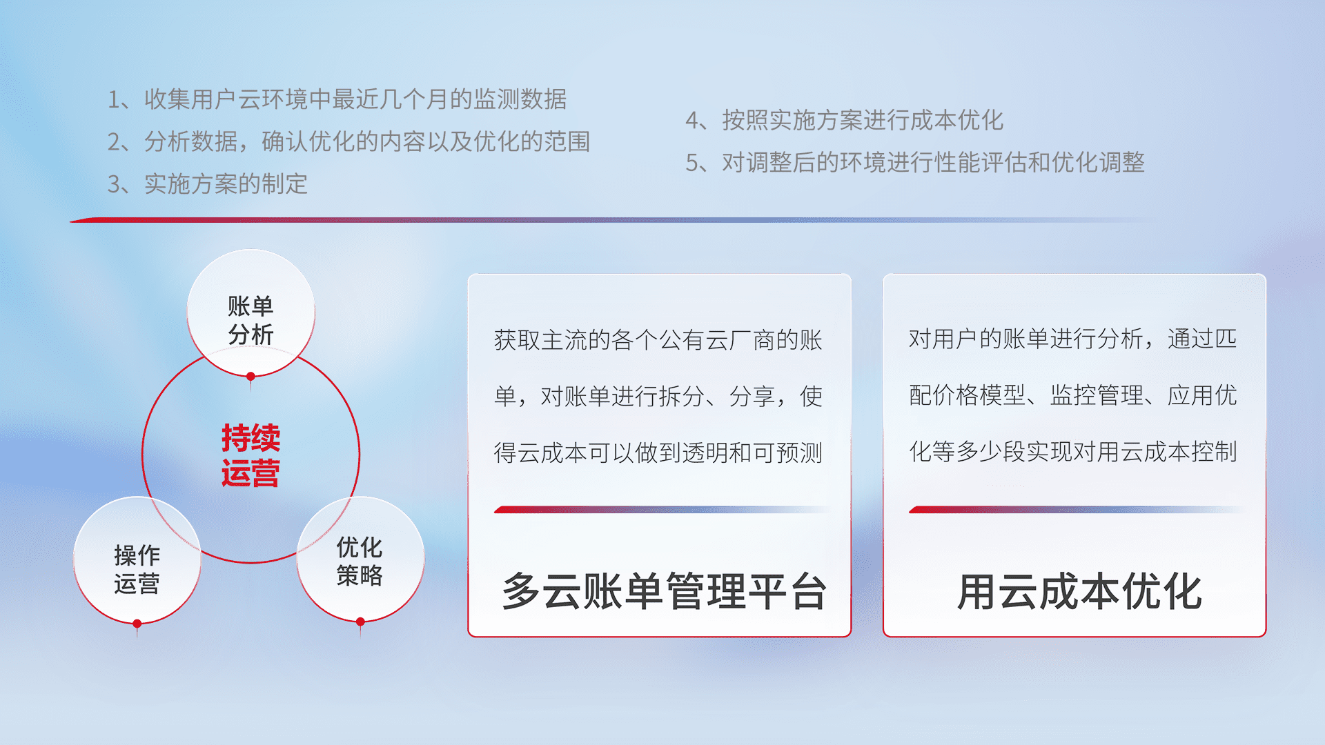 监控业务系统资源开销,,对资源的消耗精确计量,,,实现费用的透明化管理,,不断提升资源使用率,,调整资源购买方式,,降低资源费用成本,,用云成本可预测、、、、用云费用可优化,,云资源配额有据可依。。